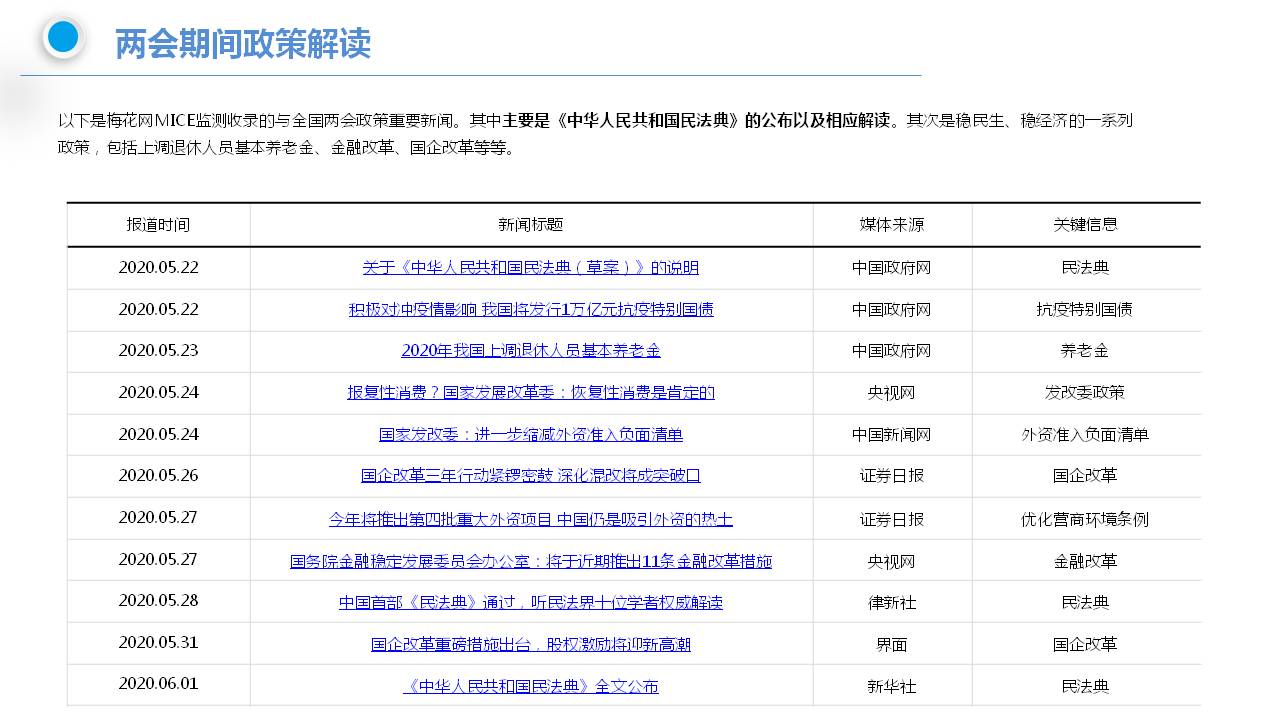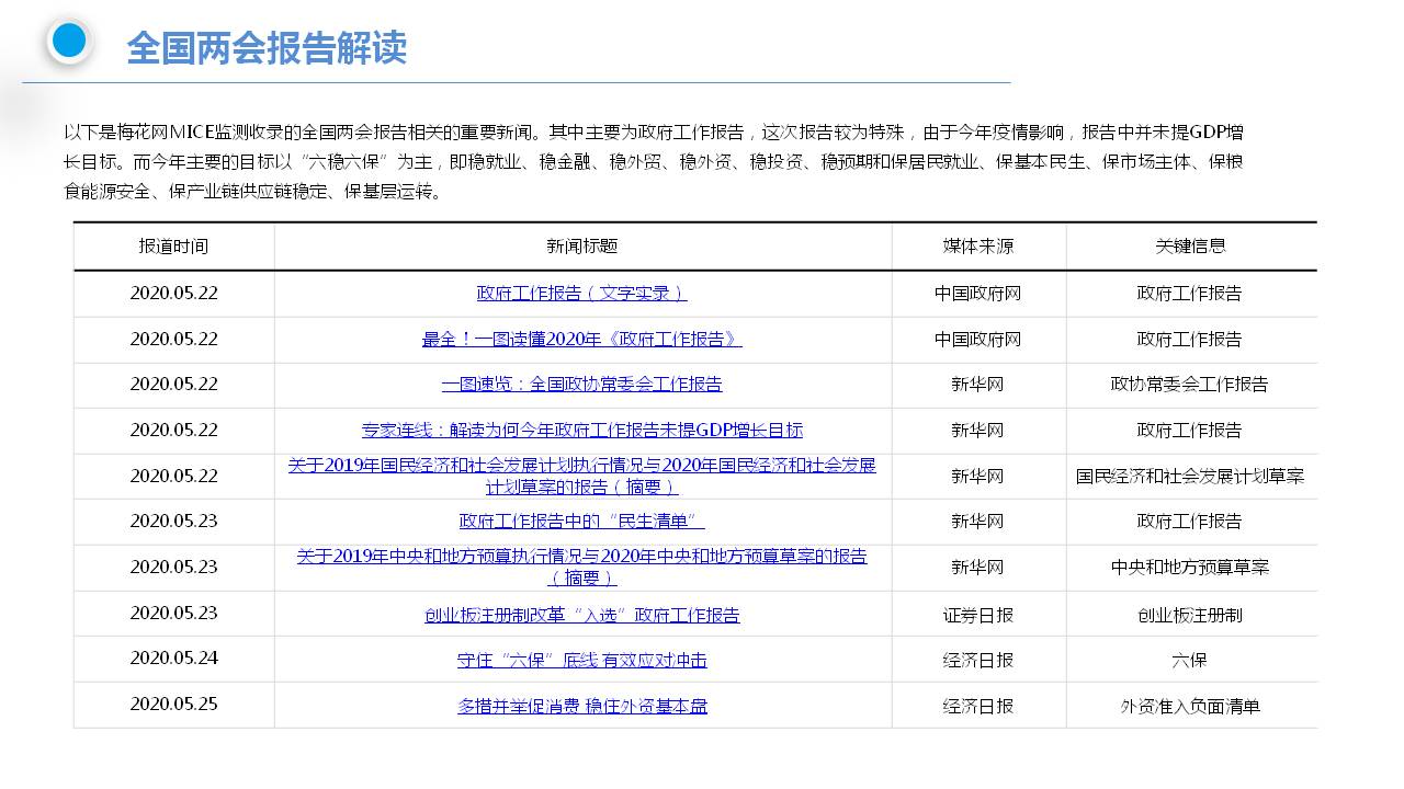 2020年全国两会于5月21日召开,5月28日闭幕。由于今年疫情的影响以及海外动荡的局势,今年的全国两会尤其特殊。此次梅花网制作了两会报告,主旨是希望能汇总对各行业从业人员有用的新闻报道,以供参考。对今年两会所发布的报告、政策和相应的代表提案感兴趣的读者不妨一看。