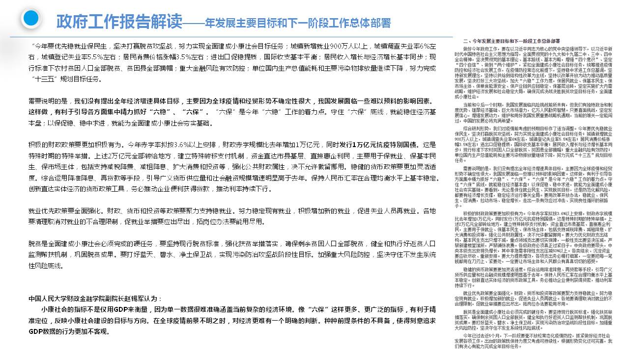 一是全国两会报告解读,希望能帮助大家更好的理解包括政府工作报告在内的两会报告;二是两会期间政策解读,汇总了两会期间颁布的主要政策法规;