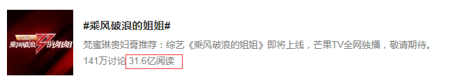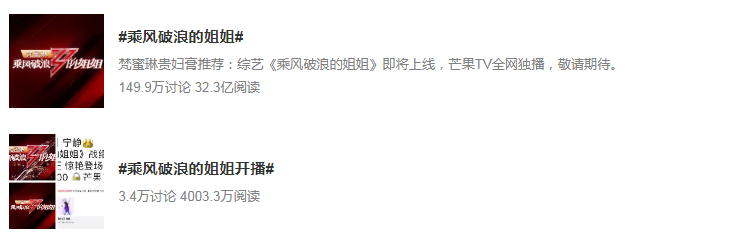 突然在工作日中午上线,无预热宣传,还是微博热搜暂停的情况下,#乘风破浪的姐姐#话题依然在1.5小时内增加了7000万阅读量,#开播#话题达到4000万阅读量,不愧是年度最受期待的综艺了。