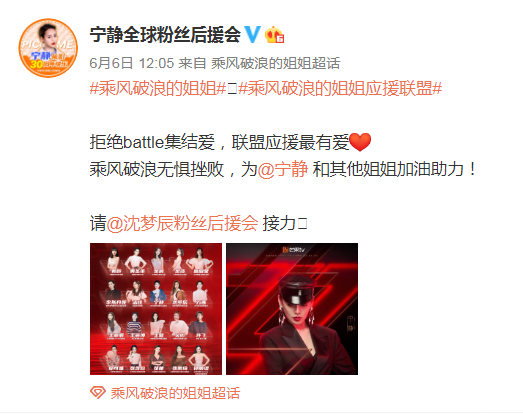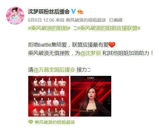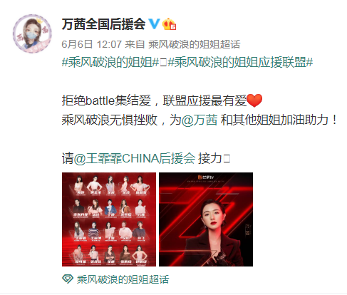 不仅如此,姐姐们还自带成熟的粉丝团入场,30个粉丝团集结打造“应援联盟”接力宣传。