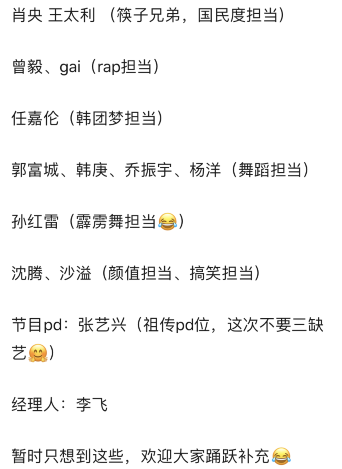 姐姐们在外为了成团奋斗,妹夫们也不能闲着,完全可以搞个衍生节目《兴风作浪的姐夫们》: