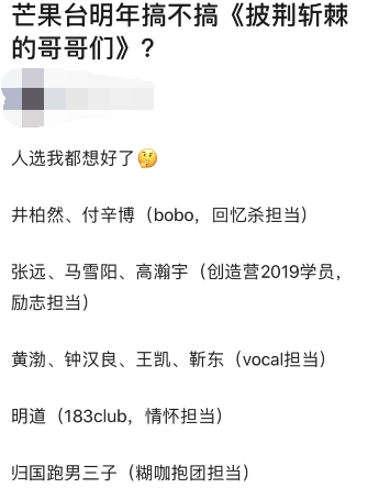 《姐姐》有了,《披荆斩棘的哥哥们》完全也可以,网友提名选手:黄渤、孙红雷、沙溢、沈腾、井柏然、任嘉伦等: