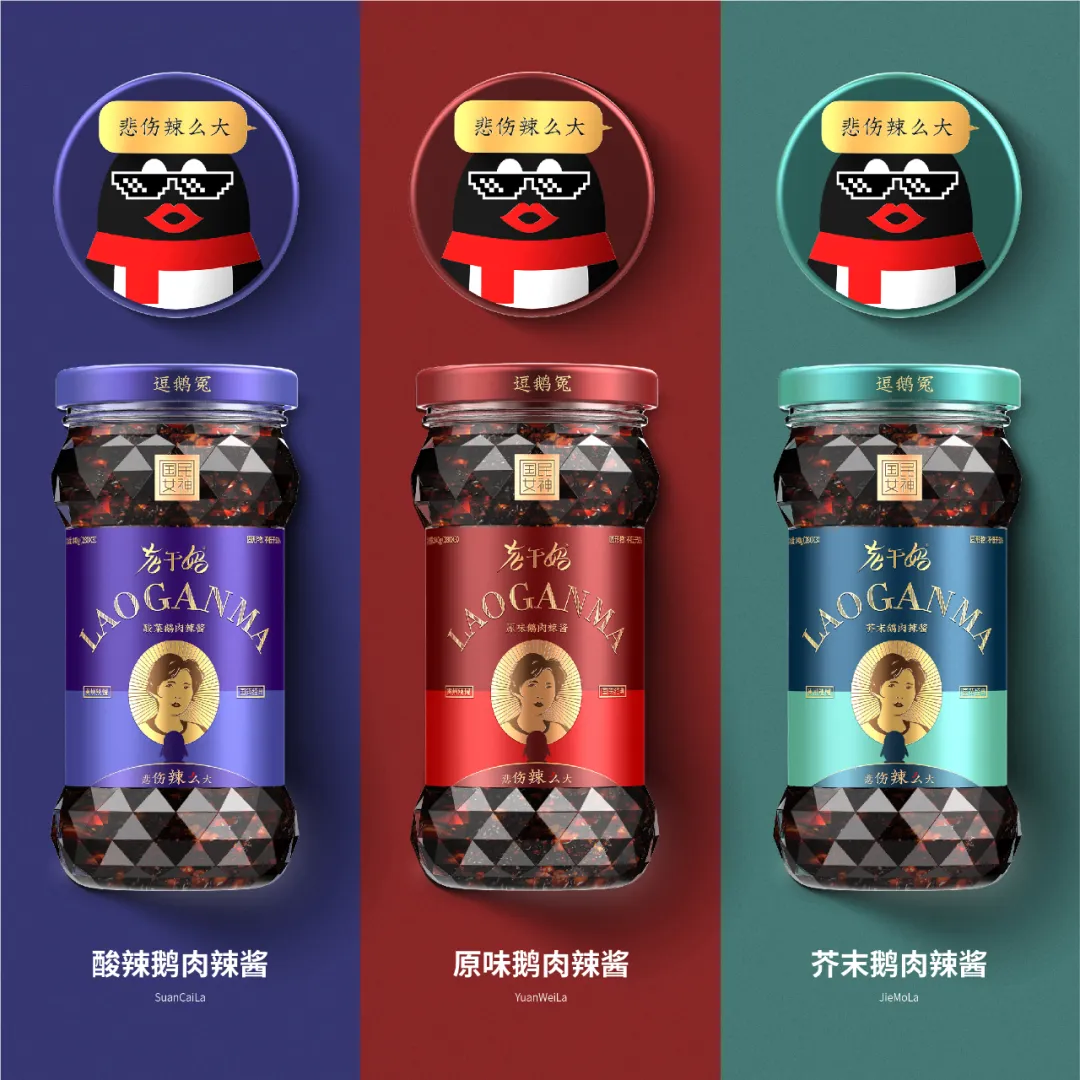 老干妈好像还把“逗鹅冤”设计到了新包装中!