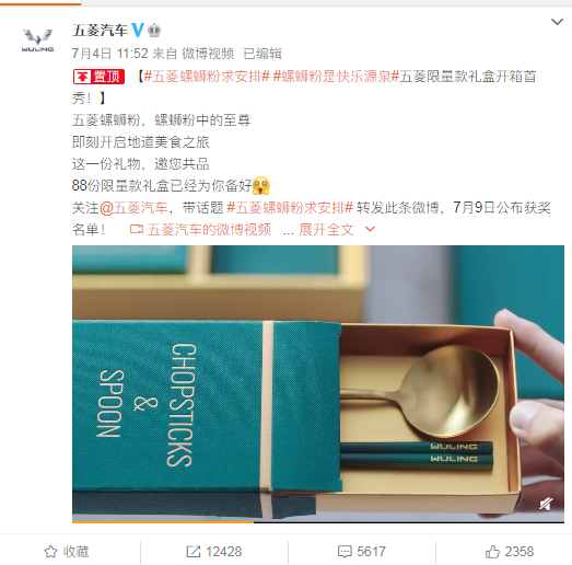大概是因为网络的积极反馈,网感极强的五菱汽车真的将螺蛳粉落地了。而且一出手就是豪华版。