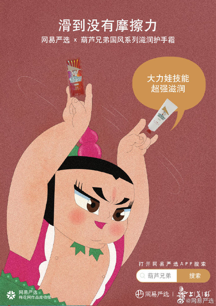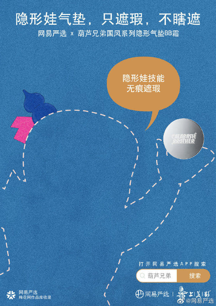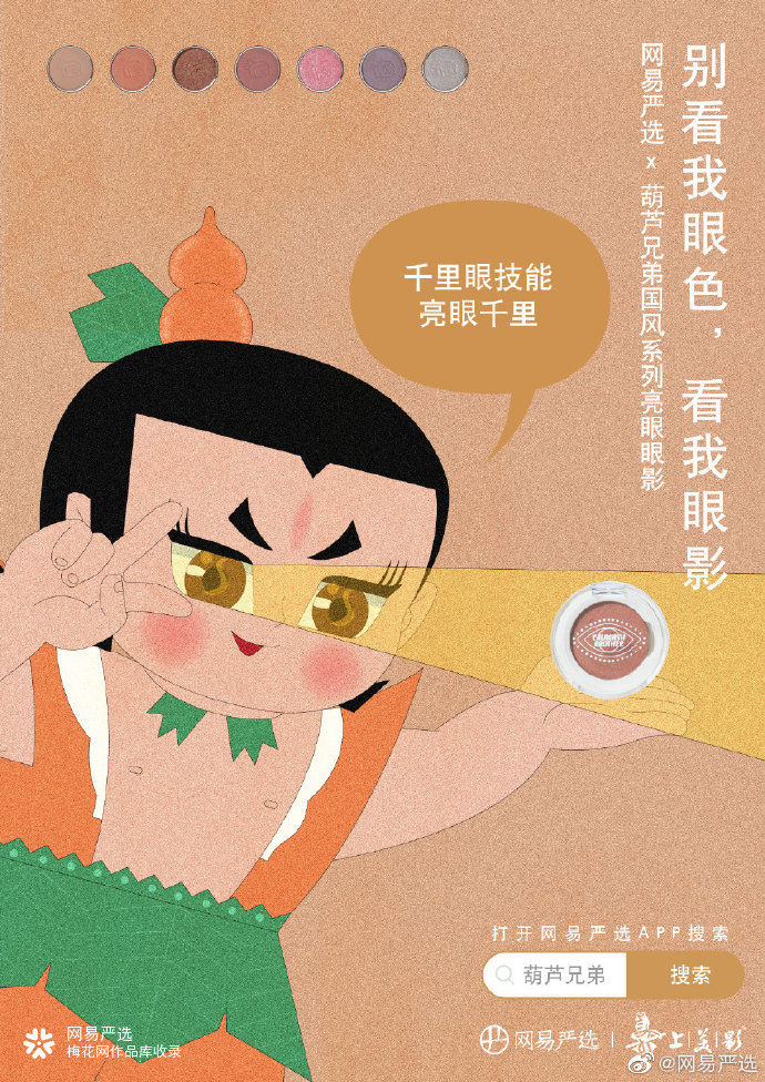 网易严选联合国民IP葫芦娃推出系列彩妆,每一款产品都对应了一个葫芦娃的技能特点,颇具趣味。
