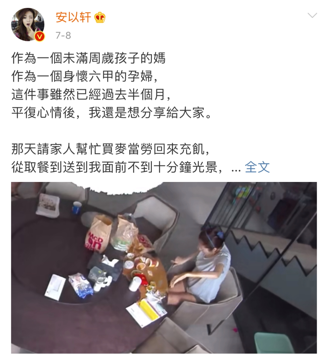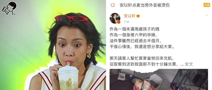 起因是安以轩收到外卖后,在拿起装有“热奶茶”的纸袋子时,突然漏了一桌子,烫到了怀孕的安以轩。