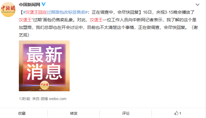 从公关角度,多家被曝光品牌的危机声明反应超速,通用五菱、嗨学网、趣头条等企业都是预告篇刚播就出致歉声明,通用五菱更是晚会没结束就出了第二轮声明。希望315晚会唤起的是商家的良心经营,而不是促生公关危机高手。汉堡王上热搜第一,可见与消费者健康息息相关的食品安全最受大众关注。