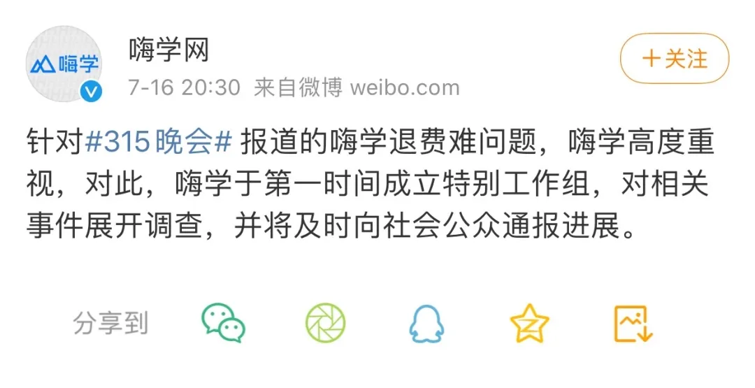 2. 嗨学网发布微博官方声明:已成立特别工作组,对此事展开调查