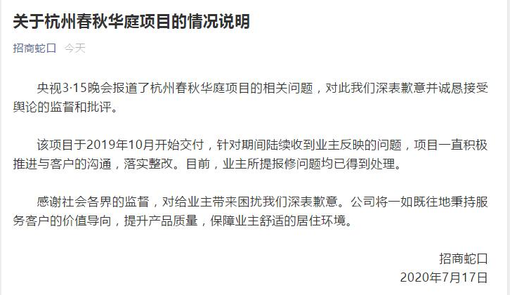 6.招商蛇口回应最晚,是在7月17日凌晨1点39分发布回应。