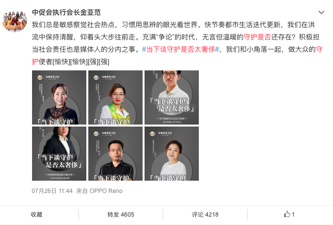 微博#当下谈守护是否太奢侈#话题阅读量3566万,话题口碑声量近8万。无论是哪一种观点,都在呼唤着这个社会需要守护。我们可以偶尔停下来,看看沿途风景,看看身边的人事物,看看有谁在守护着自己,也要学着去守护所爱之人。
