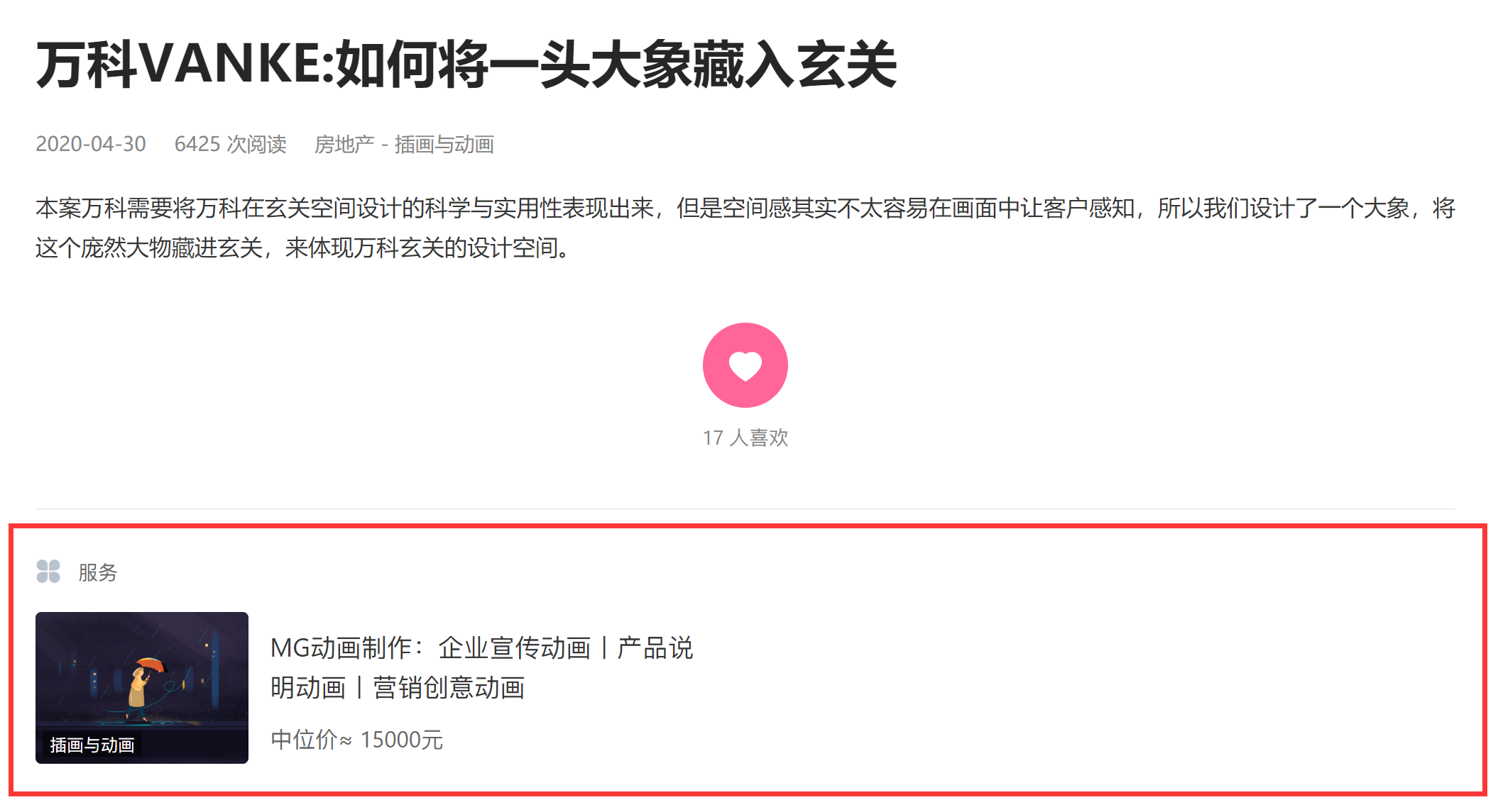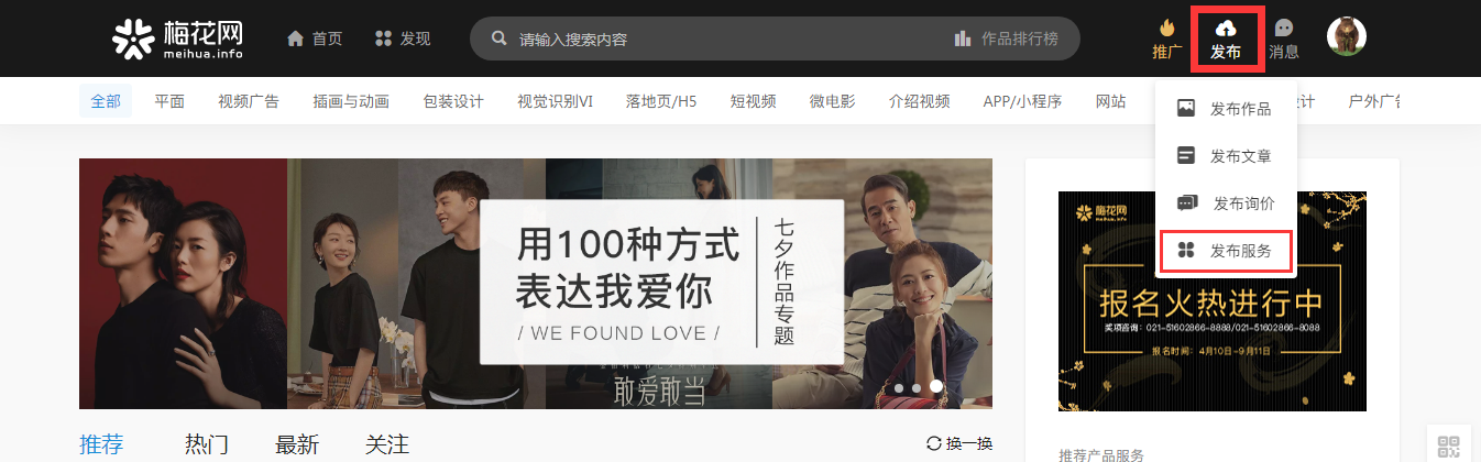 梅花网现在支持「服务」发布啦,创作者可以直接把自己所能提供的业务内容发布到网站(如:视频拍摄、VI设计、活动策划...),更全面地展示自己的工作能力及服务范围,用户可以针对具体服务进行精准询价,提升对接效率。具体形式如下↓