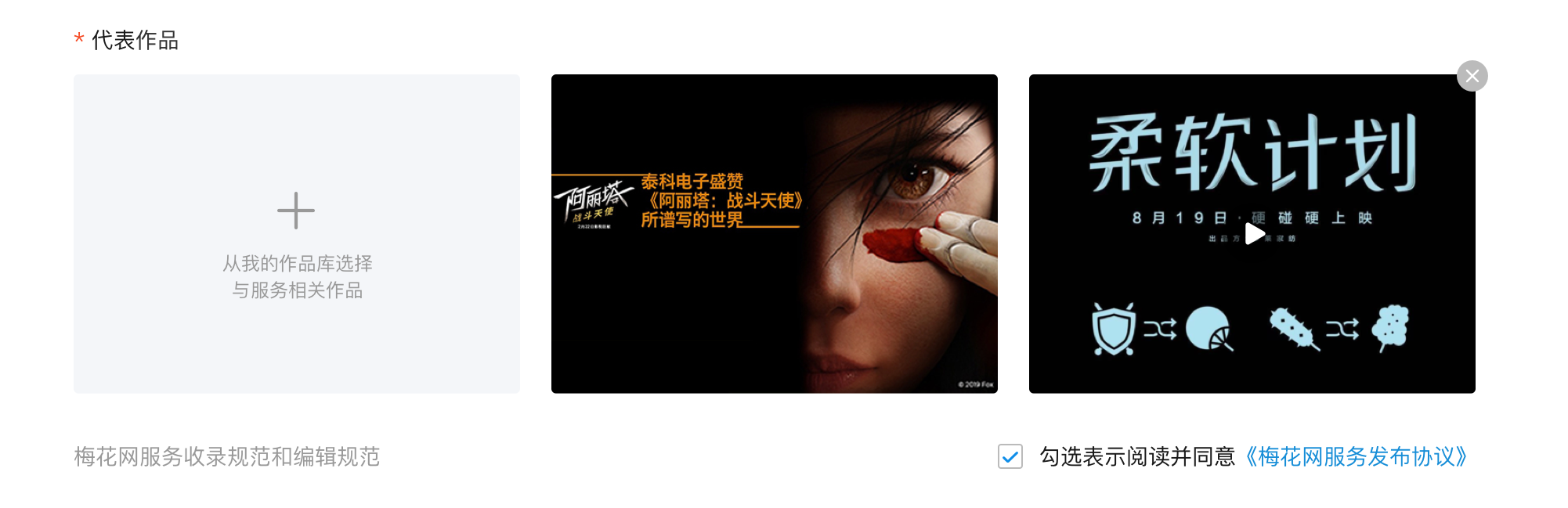 为了更好地展示创作者的服务内容,所有的服务都必须选择相关代表作品。作品匹配度越高,越能提升服务的吸引力及信服力,代表作品可多选。