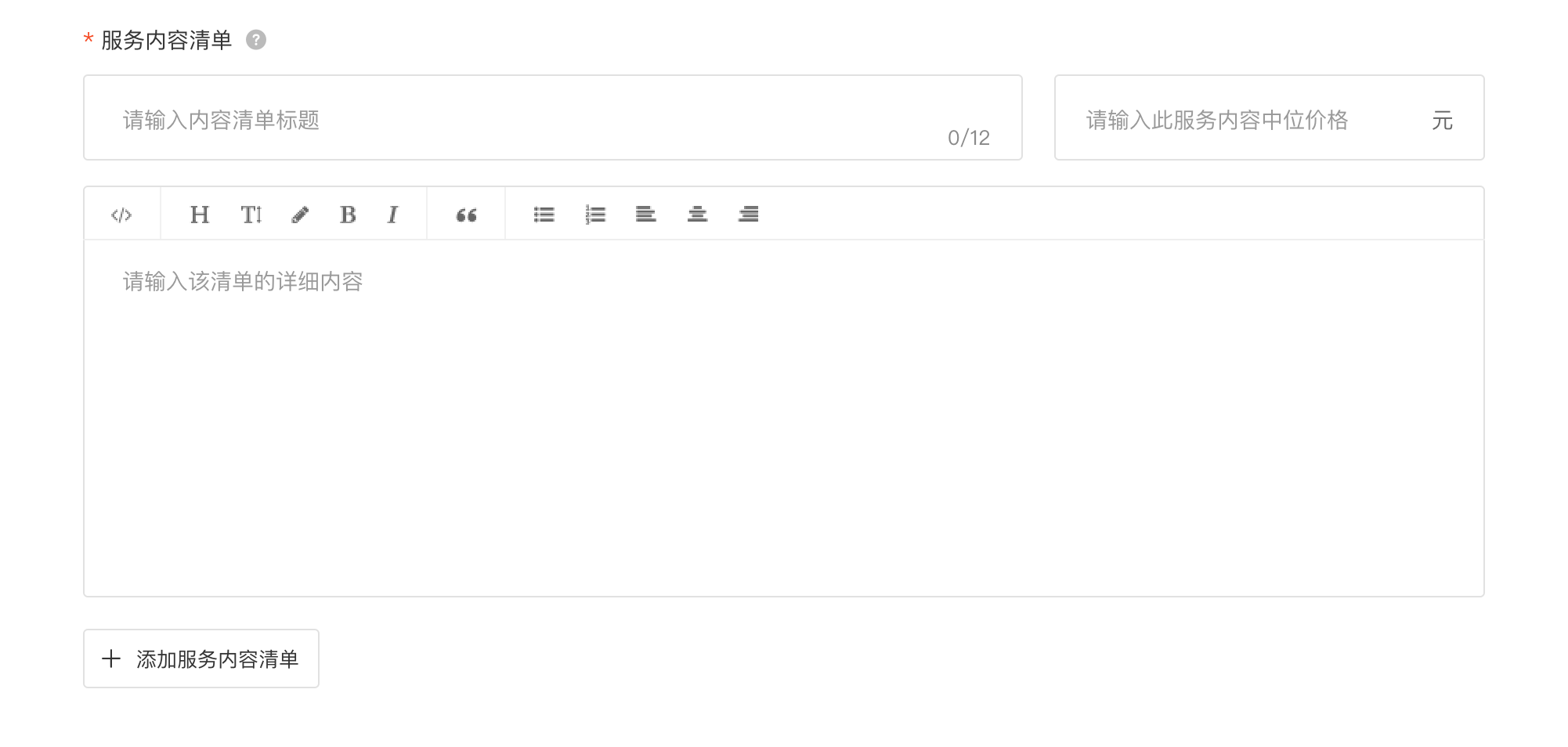 服务内容清单主要展示服务具体包含的项目内容及操作流程,一个服务可以包含多条服务清单。