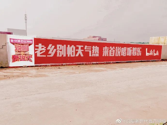 其实,这是B站联手聚划算百亿补贴,打造的强档综艺《说唱新世代》的户外广告,这次不是投放在地铁、写字楼,而是选择农村,另类的广告更吸睛,更易制造话题。
