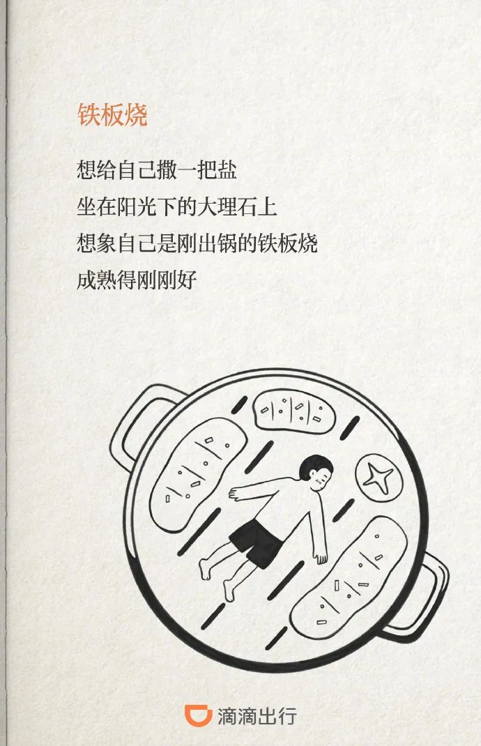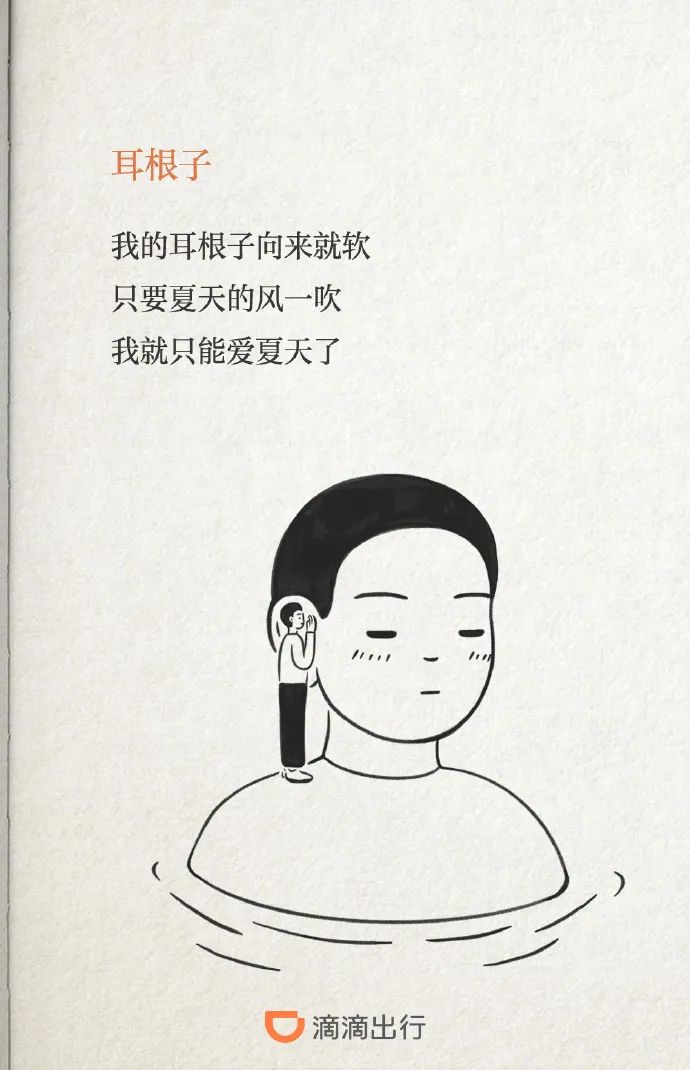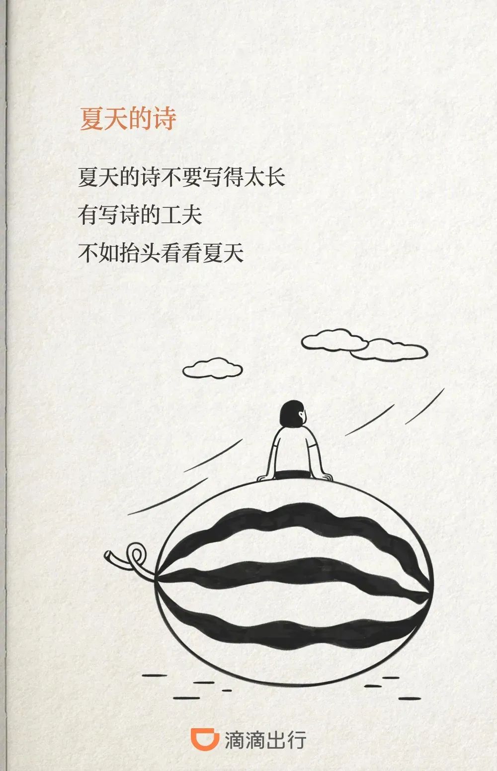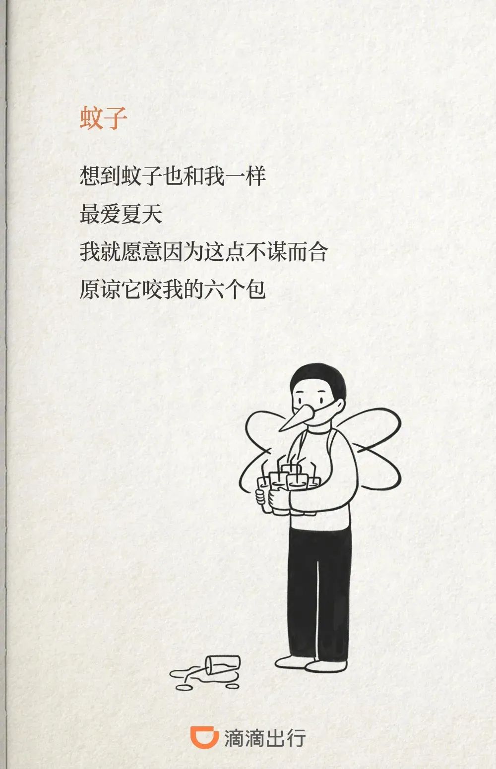 在这个夏日,滴滴也开始写起了诗集,话题从夏日冰棍、蚊子等夏日因素入手,还别说,真有那味了~~