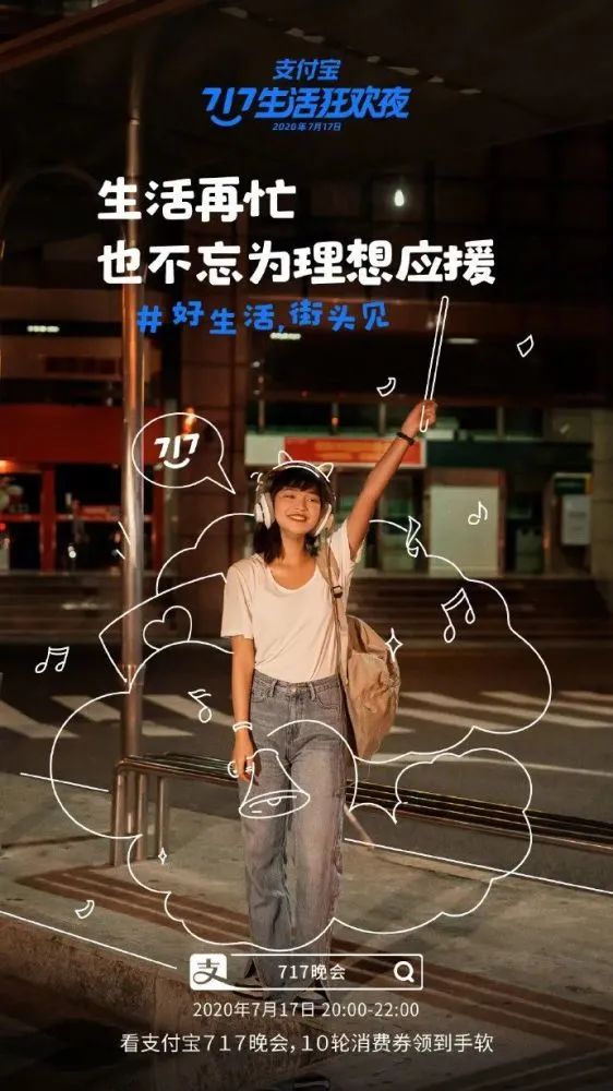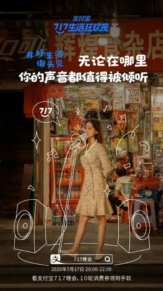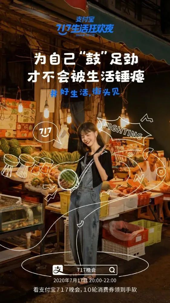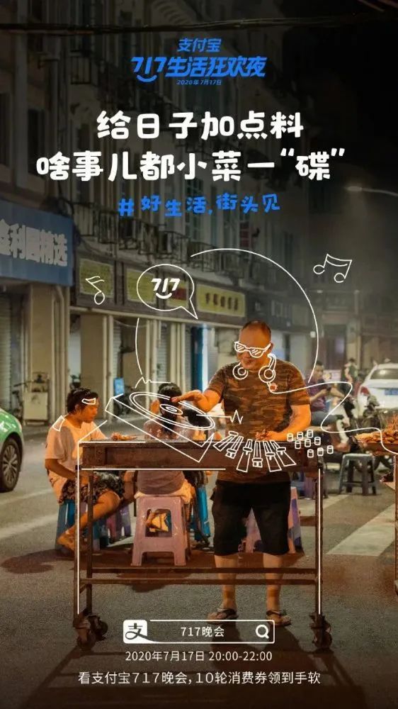 为了给小店主打气,支付宝大放百亿全国版消费券,并联合部分地方政府、商圈、夜市、品牌打造一场“717生活狂欢节”,。