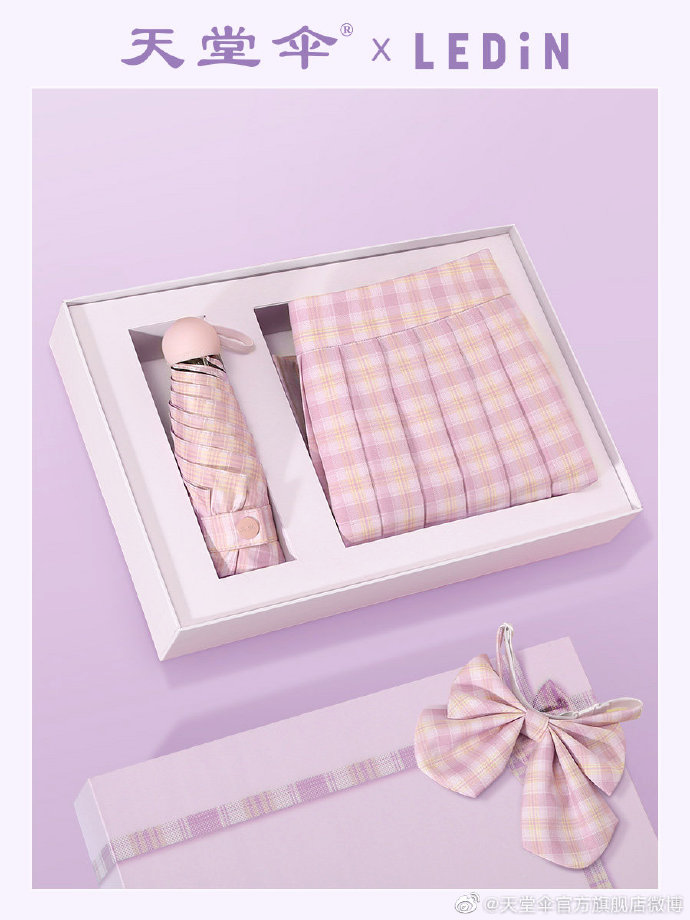 月见花开是唯一一个推出限定礼盒的系列,格纹裙除外,还有胶囊伞和领结。