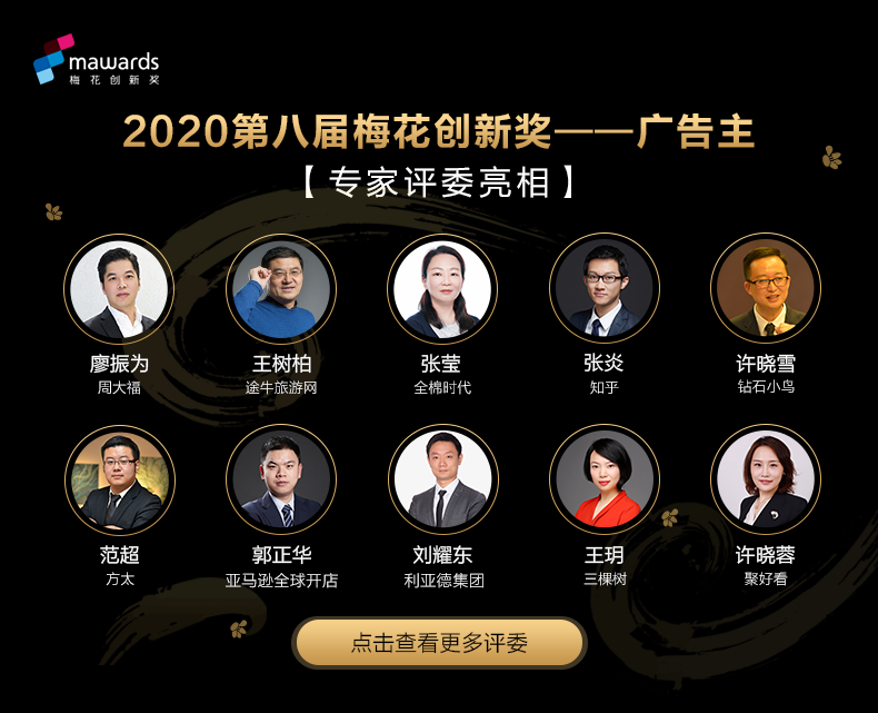 9月14日,第八届梅花创新奖(Mawards)专家评委团正式产生。今年评审团力邀广告主加盟,不仅邀请到了周大福、途牛、知乎、亚马逊、千寻位置等知名企业高管,还邀请到了服务商中的翘楚省广、群邑、天与空、时趣、鲸梦等企业的行业领军人物担任评委。