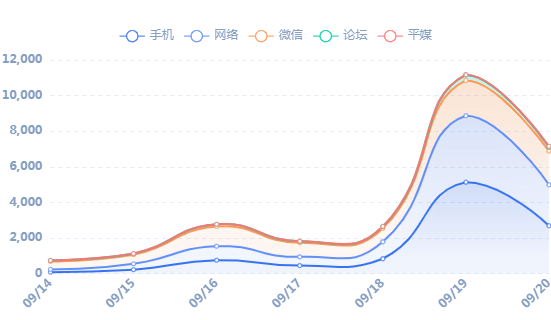 WeChat声量时间趋势图(时间范围:9.14-9.20)