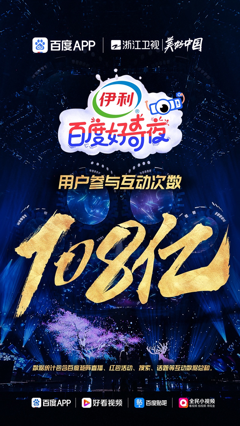 9月19日晚,百度App联合浙江卫视打造,伊利独家冠名的国内首档好奇主题晚会《百度好奇夜》成功举办并圆满收官,晚会期间,全网参与互动人次超过108亿。