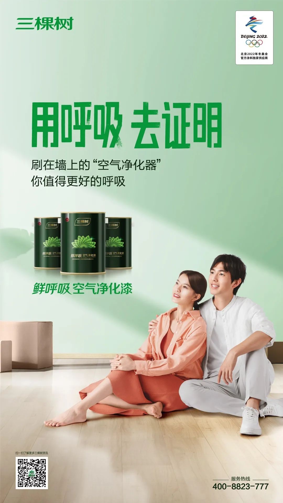 作为北京2022年冬奥会和冬残奥会官方涂料独家供应商,三棵树时刻关注家居空气质量,关心用户的每一次呼吸,首创超越行业标准的“健康+”8项新标准。我们通过健康产品和感动服务,践行“让家更健康,让城市更美丽”的企业使命,并且致力于传递健康理念和正能量,感染和激励广大用户超越梦想,创造美好生活。