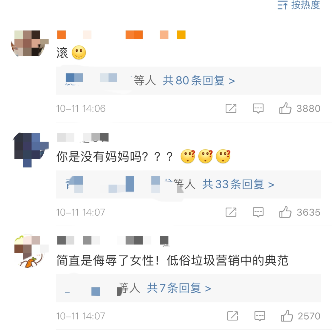 而且更关键的是,这类低俗广告还反映出了品牌的价值观:既不尊重生理科学,还肆意冒犯女性。对建设品牌印象来说,简直就是灾难。。。