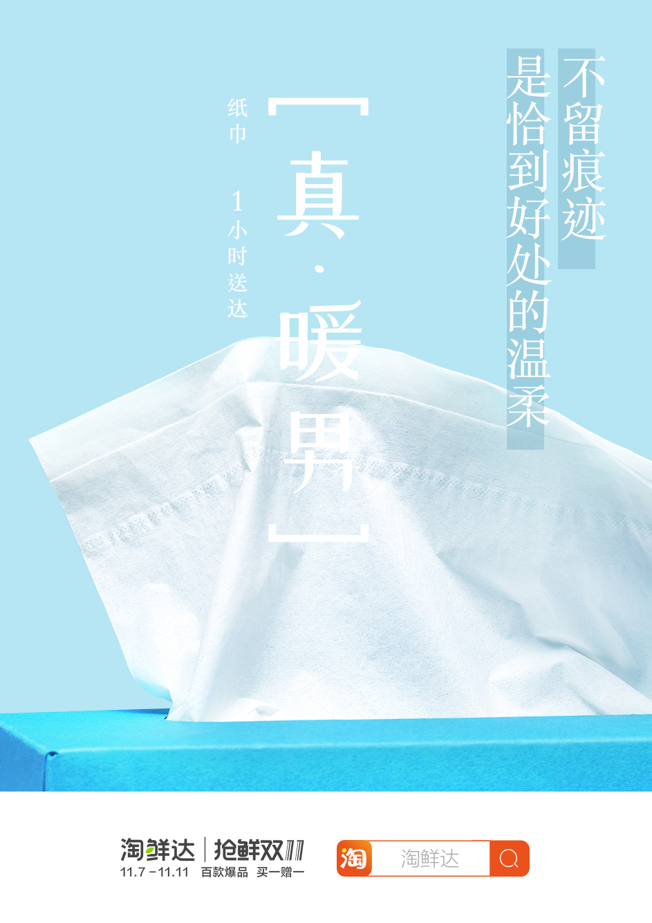 2017年双11,网易严选还推出过一组冷淡风海报,不过文案很温暖。