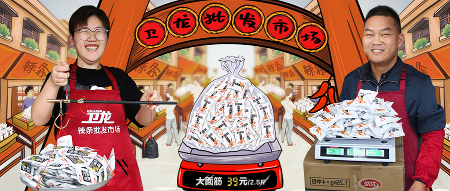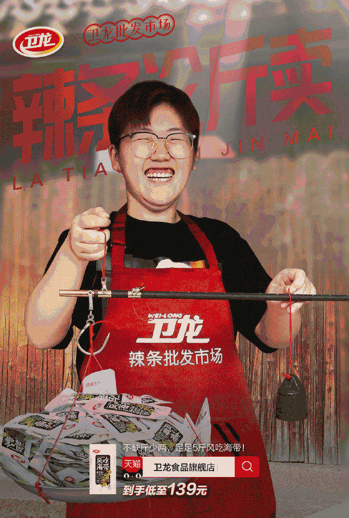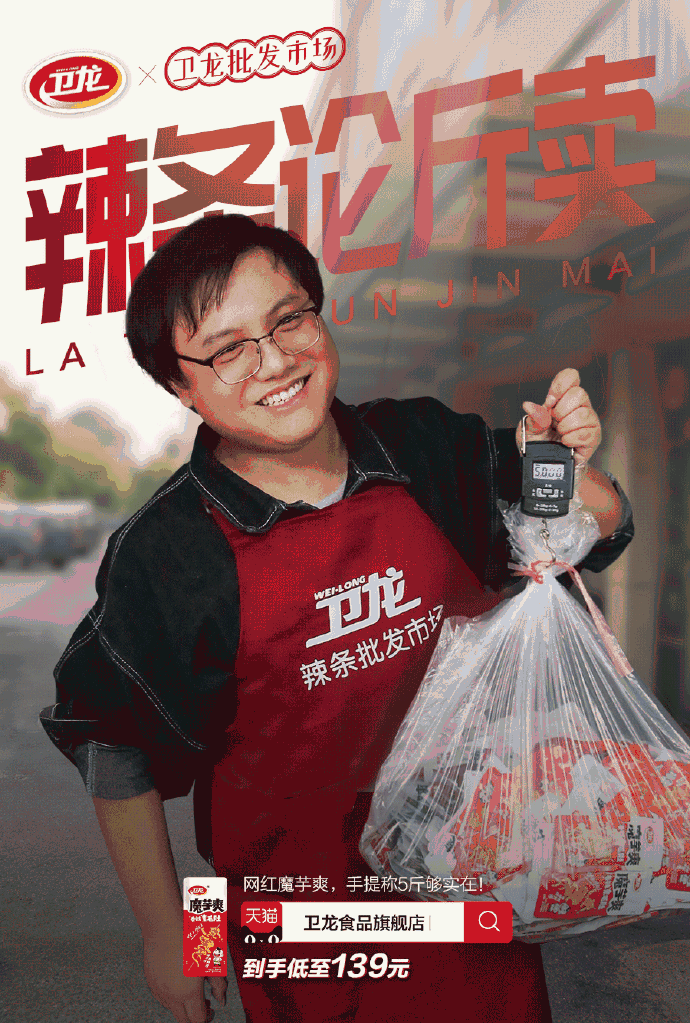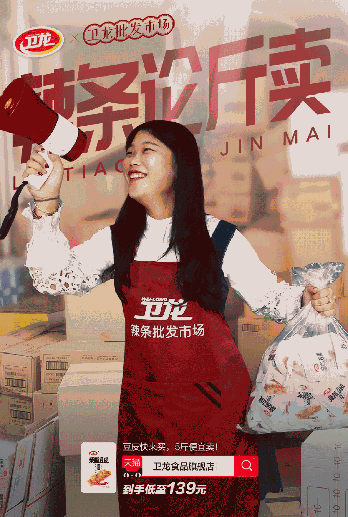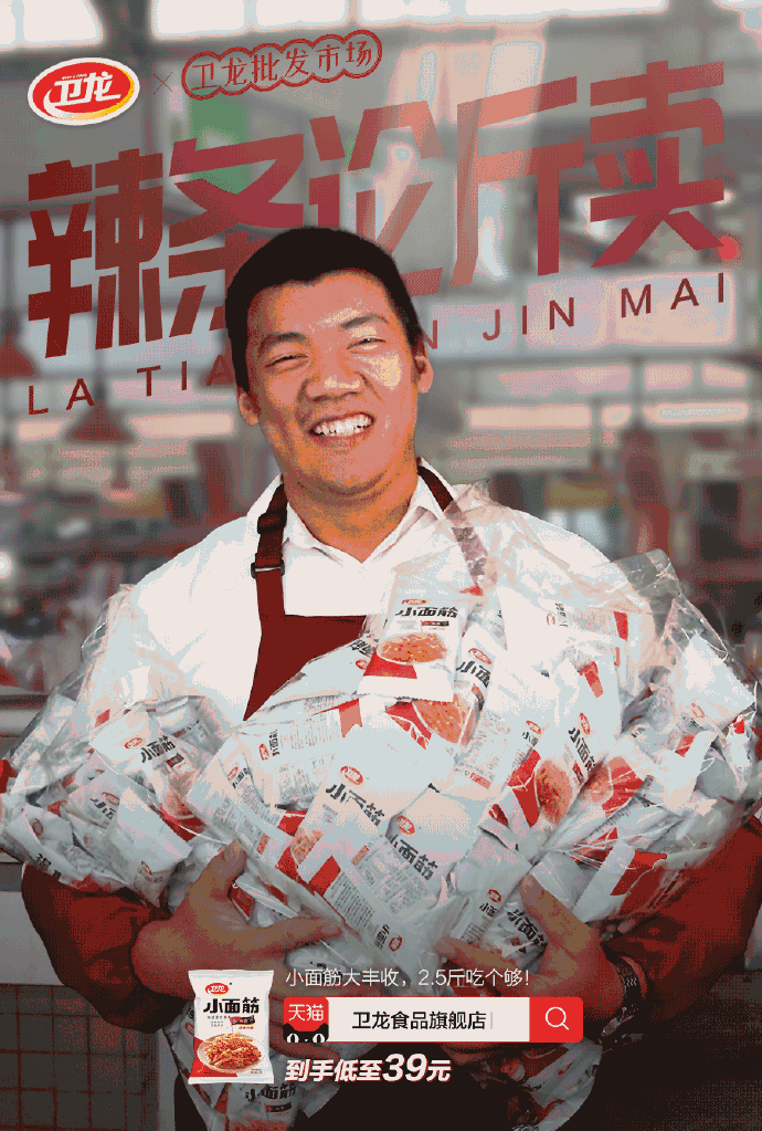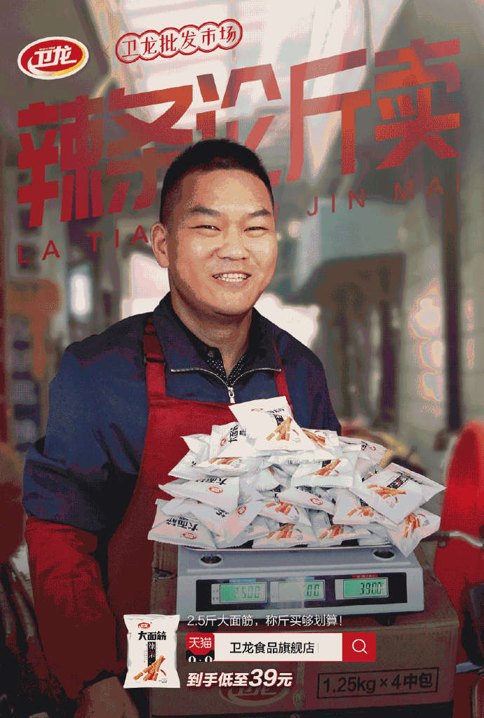 2019年卫龙食品的主题文案为#辣条论斤卖#