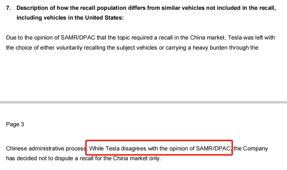 特斯拉同时还声称,“尽管不认同中国国家市场监督管理总局的意见,还是决定召回相关产品,否则将背负沉重的行政负担。”