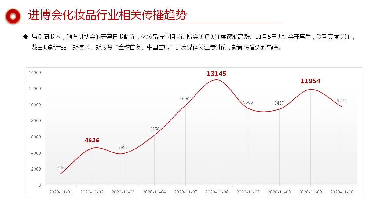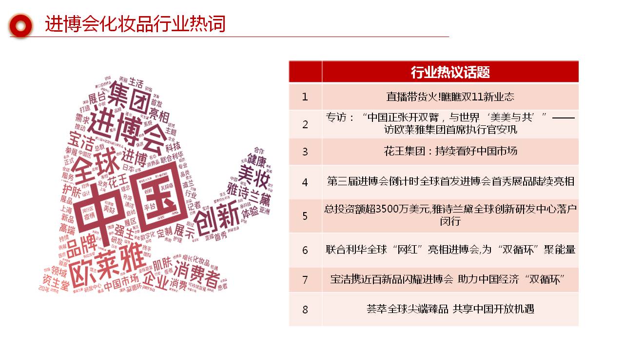 梅花网定制监测部快消服务小组对本次进博会的媒体传播进行了深入分析,发布了《2020·上海第三届进博会化妆品行业专项报告》,帮助洞察进博会下媒体眼中的化妆品行业: