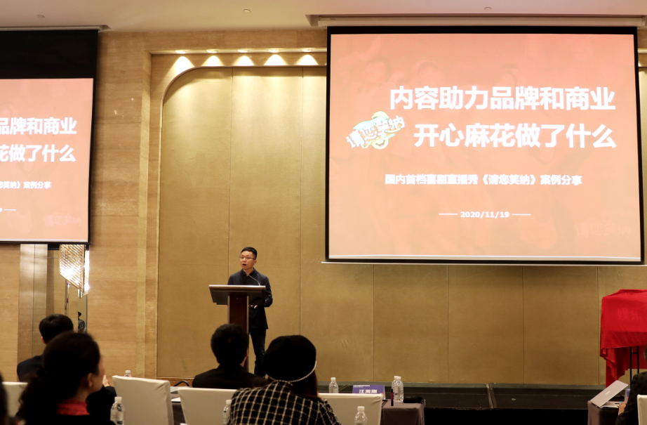 2020年11月19日,开心麻花品牌伙伴年度交流会暨《请您笑纳》节目分享会在上海举行。上海开心麻花总经理汪海刚和开心麻花首席增长官韩梅分别就国内首档喜剧直播秀《请您笑纳》和开心麻花内容定制化产品进行分享与交流,并与多位营销界同仁共同商讨“视频时代下,品牌娱乐营销的破圈之道”。当天开心麻花联合市场部网共同成立“娱乐营销品牌联盟”,旨在促进联盟成员之间的娱乐内容和品牌资源的共建共享。