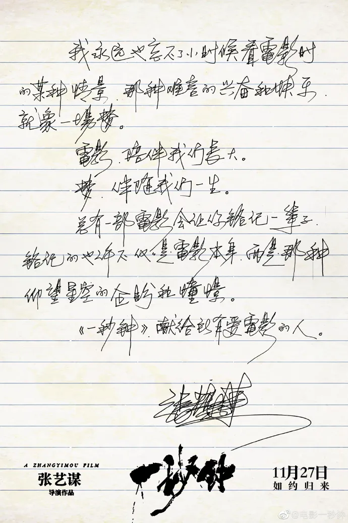 颇受大家期待的张艺谋新片《一秒钟》即将上映了,官方也释出了很多海报文案。