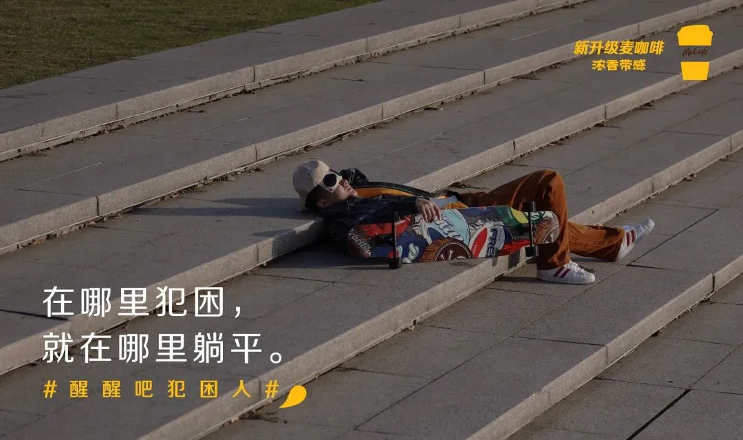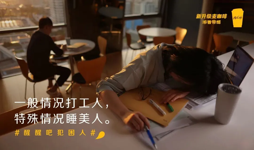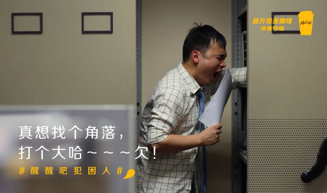 麦当劳旗下品牌麦咖啡最近推出一组海报,围绕“困”为主题,以#醒醒吧犯困人#为话题,将“犯困人”的真实现状通过海报和文案的形式加以呈现: