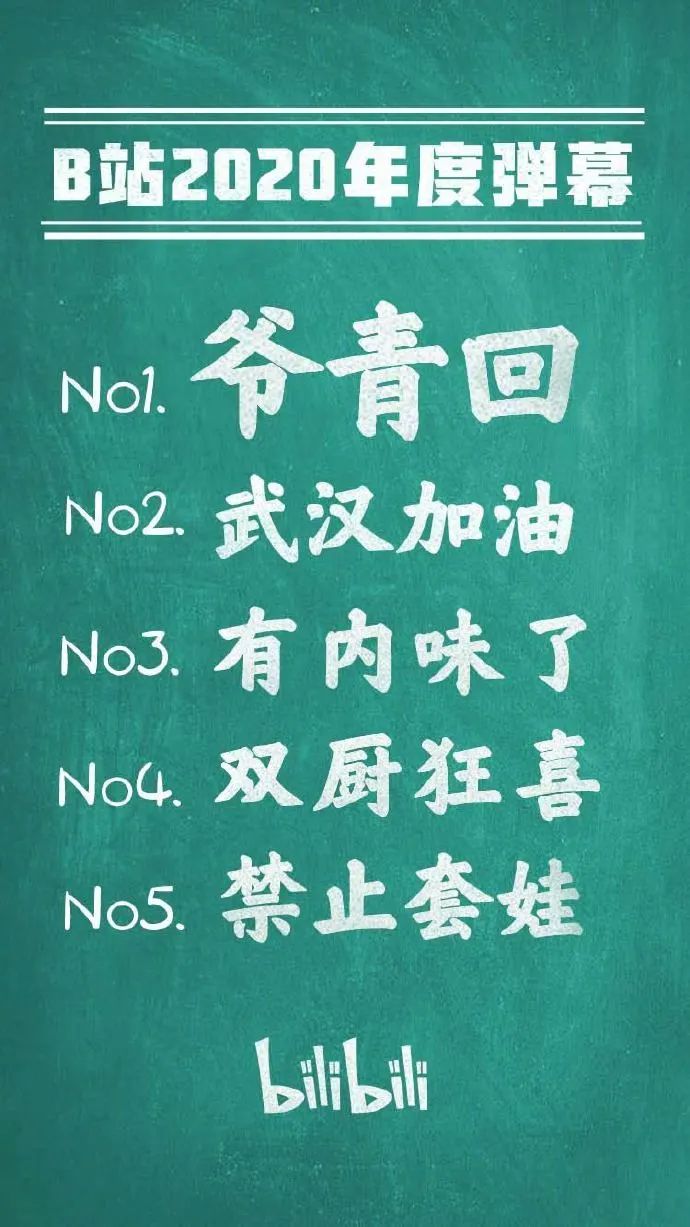 前几天,B站公布了2020年度弹幕排名,"爷青回"以540W+数量成为年度弹幕,除此以外,还有"武汉加油"、"有内味了""双厨狂喜"、"禁止套娃"等。