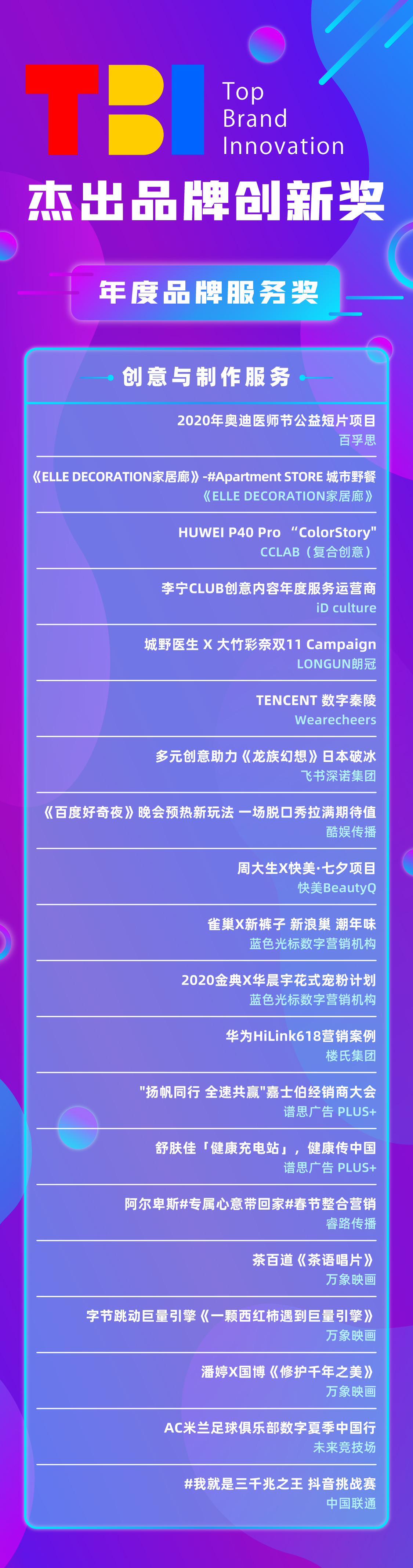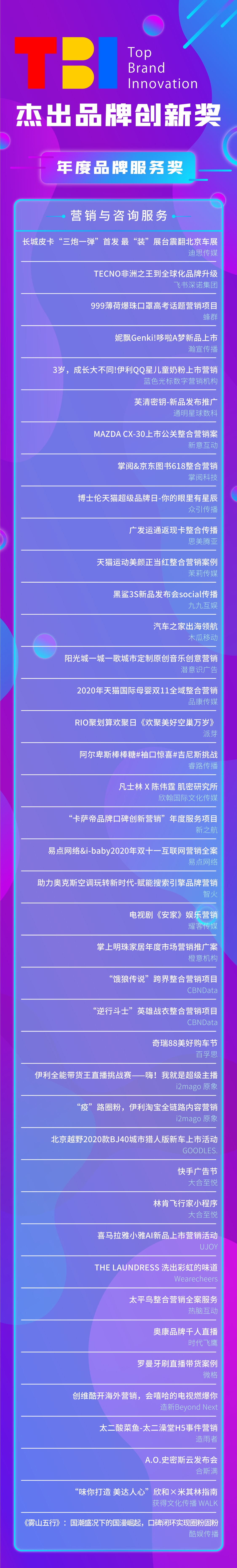 2020年度TBI杰出品牌创新奖获奖公布,挖掘品牌创新服务的“极佳拍档”