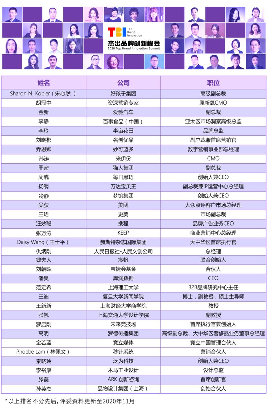 附:2020年TBI品牌创新奖评委名单