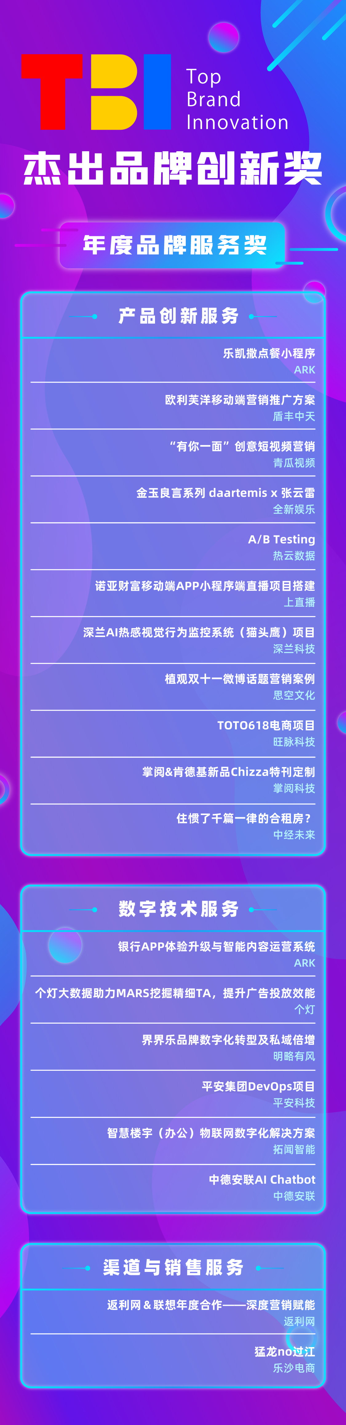 以下为【TBI年度品牌服务奖】的完整榜单: