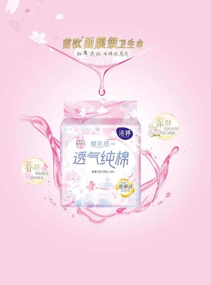 个性化、专属感的品牌升级操作虽赢得了年轻人的好感,但真要年轻人买单,还得看产品内核。因此,在产品升级方面,洁婷也给出可圈可点的答卷。针对精致颜控型女生,洁婷打造首款面膜级卫生巾:轻薄透气,自然服帖;而3月即将上市的樱肌感天然纯棉产品更在100%天然纯棉基础上更添加了樱花精华,亲肤之余更养肤,如面膜般滋养肌肤!这也正是因为洁婷精准洞察了精致女生的需求:护肤已不只是在脸上,更是现在女生追求的从内而外的舒适与美。