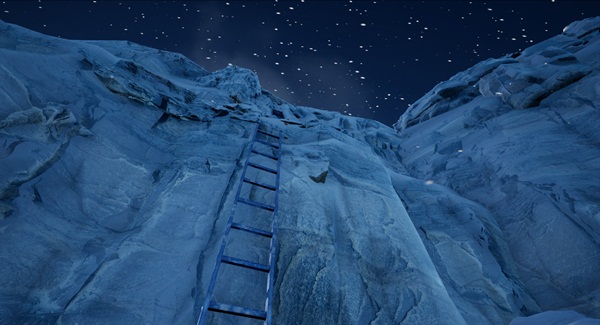 整个场景高度还原了真实珠峰,包括梯子、绳索、安全锁扣、帐篷等细节都非常到位。同时整个场景的天气模拟到位,尤其是大风天气、下雪天气,以及相应环境配音。其次,场景内布置的梯子与VR环境里的梯子比例一致,体验更为沉浸式。