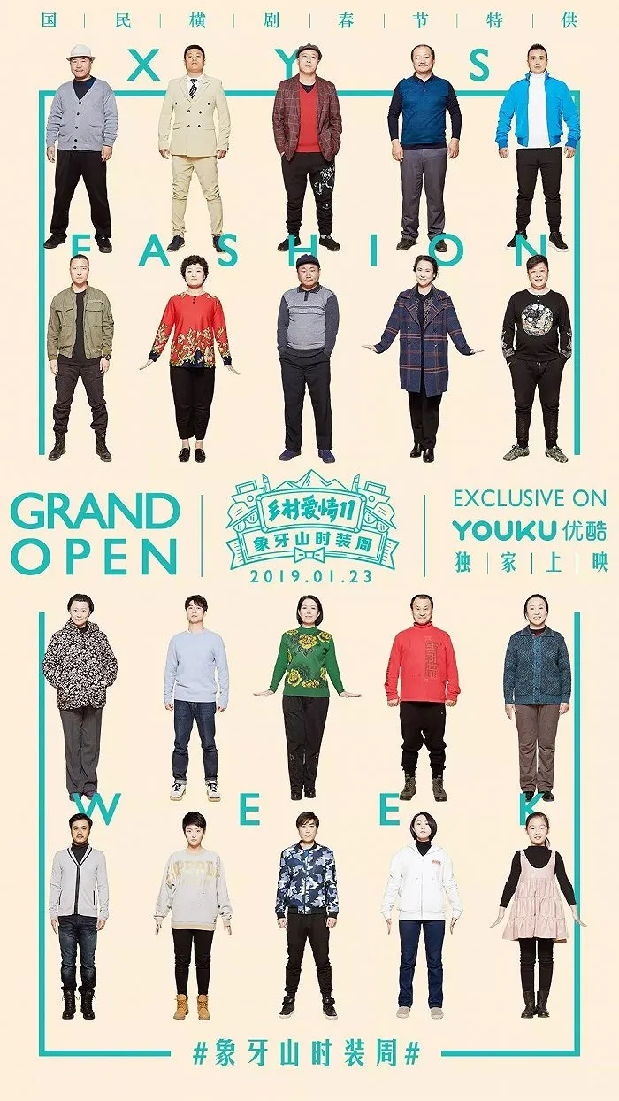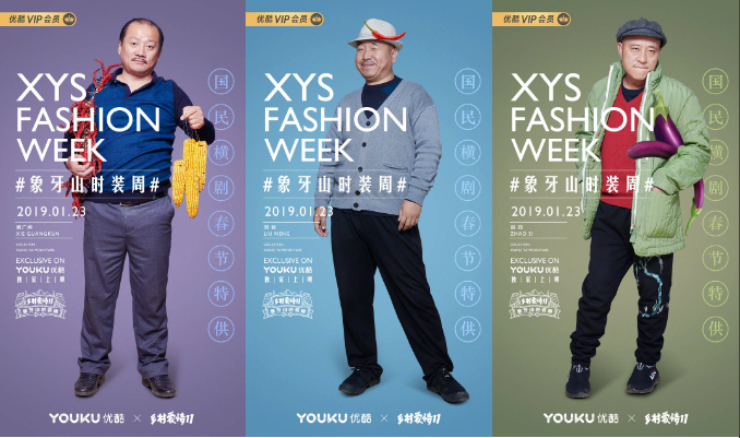 2019年,《乡村爱情》11季上线,官方顺势搞了个“象牙山时尚周”,剧中人物齐上场,展现不一样的土潮。