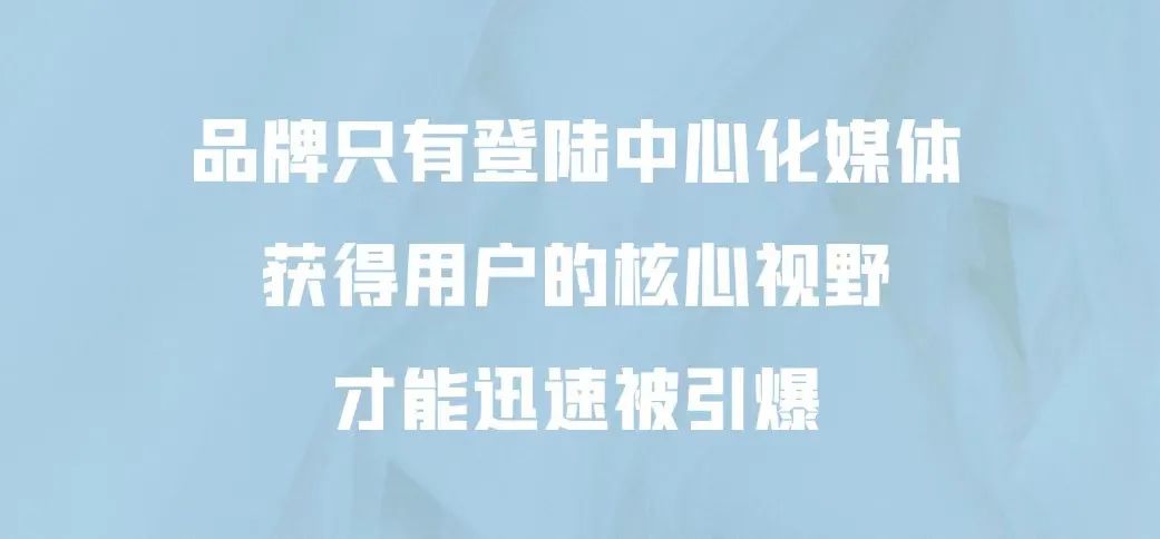 品牌只有登陆此类中心化媒体,获得用户的核心视野,才能迅速被引爆。为什么?因为品牌引爆应饱和攻击而非渐进,力争先入为主抢占用户心智。