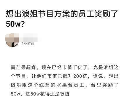 当时八组有网友曝出,芒果电视台对策划姐姐这档综艺节目的的工作人员奖励了50万。