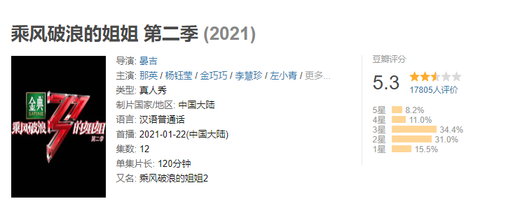 俨然把浪姐2当成了工作中的通告,30+姐姐们与节目的冲突性消失了,节目一开始就少了趣味。