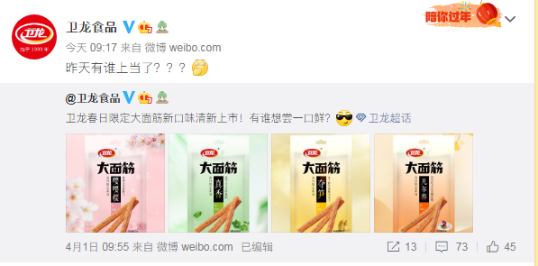 结果,今天才发现,只是卫龙愚人节的玩笑。被骗的朋友,举个手~