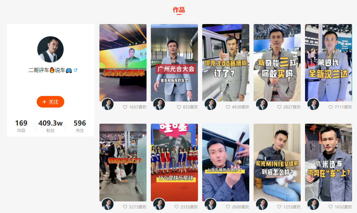 另一位名为“二哥评车说车”的快手创作者,同样依靠着长期产出选车小窍门的高质量短视频,赢得了409万粉丝的信任,由他发起的快手直播购车团,曾创下总计288辆的成交记录,比很多4S店一个季度的成交额都要高。