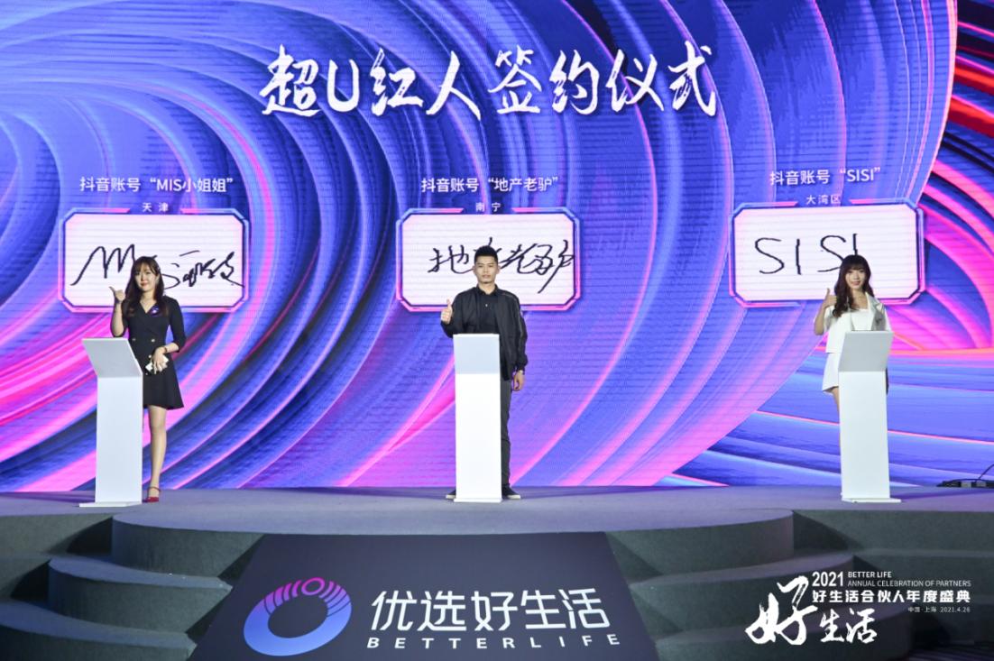 盛典上,好生活与多位汽车、开发商、网红达人签约,并正式对外发布“百城千店万铺”计划,助力合伙人完成由一事一业的生意,达成一生一世的成就,让合伙人有钱挣、轻松挣、放心挣,引领非标大宗消费品交易变革的新时代。