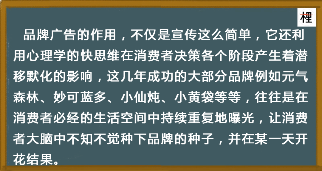 看到这里,我有了品牌传播的第一性理论其实就是这本书中提及的“两个系统”理论——任何理性也无法抵挡重复、再强大的心智之门也很难抵挡重复,品牌传播的本质,有趣有料只是浮云,用“重复”叩开消费者的心理关隘并不断的重复来抵御遗忘,就是第一性。