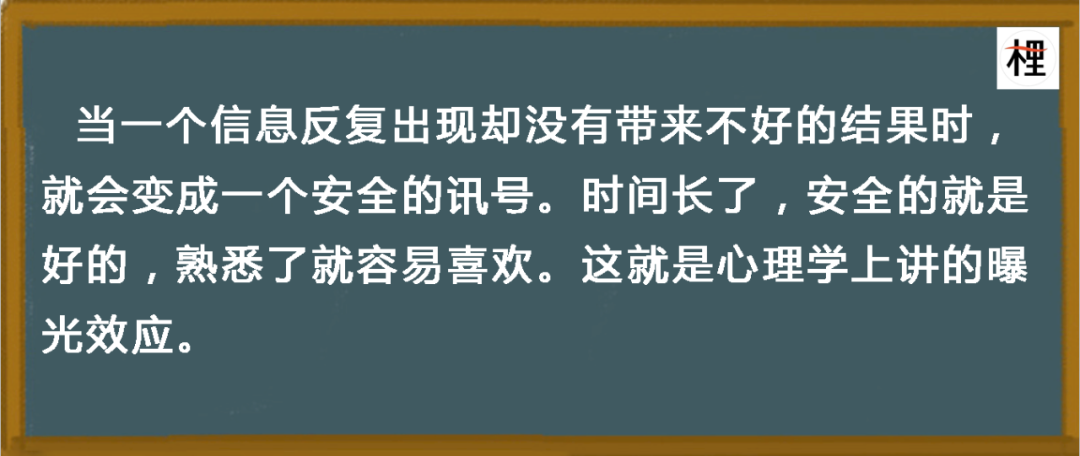 因此,结合康纳曼的理论,就不仅解释了笔者本人为什么常常会莫名的记住下意识中觉得有些“无聊”的电梯广告的广告语,甚至会在卖场中见到这一品牌的商品会有购买冲动的原理—-其本质就是,重复性会引发认知放松的舒服感、熟悉感。