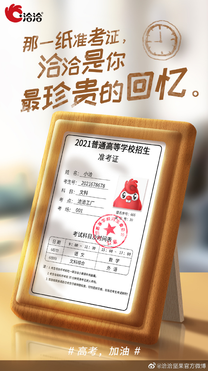 那一纸准考证,洽洽是你最珍贵的回忆。