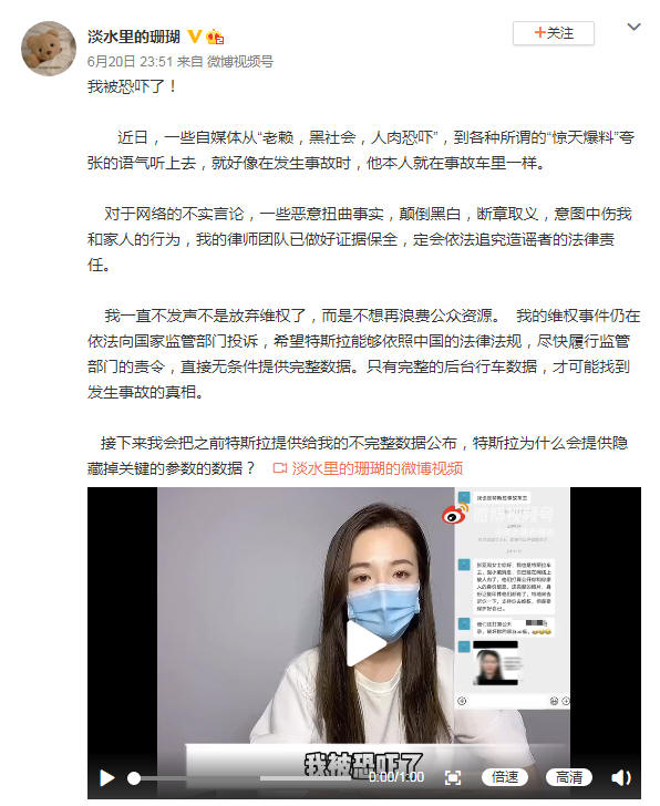 此外,她还敦促特斯拉能够依照中国的法律法规,尽快履行监管部门的责令;希望后者尽快提供完整的行车数据,找到发生事故的真相。她还表示,接下来会把之前特斯拉提供的不完整数据公布。